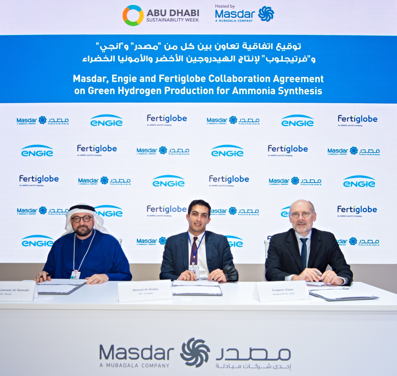 Masdar and ENGIE have announced that they have signed a collaboration agreement with Fertiglobe, the strategic partnership between OCI N.V. and the Abu Dhabi National Oil Company (ADNOC).