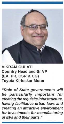 For India, key national goals include reducing imports, fossil fuel consumption, carbon emissions, pollution, enhancing local manufacturing and creating jobs. Alternate fuels and xEVs are key enablers for shifting away from dependence on fossil fuels. The challenge before us is to make certain that as we shift to BEVs, the savings in oil consumption are not nullified by the import of BEV parts and that contribution of manufacturing to GDP is not impacted as is the creation of jobs. For this, we need to ensure that a robust manufacturing ecosystem for EV parts is created along with measures to ensure greater consumer acceptance of BEVs. The customer's readiness to adopt any new technology is one of the biggest challenges and this is even more severe for EVs. Owing to lower consumer acceptance of EVs it is essential that all xEVs, which include SHEVs and PHEVs, are also supported proportionally by government policy. This will facilitate investment viability for local EV part manufacturing through the aggregation of demand of these parts, as all xEVs have common EV parts. Therefore, securing a significant tax rate gap between SHEVs and petrol vehicles in the short term and migrating to carbon-based taxation (GST) in the mid-term will be critical to bring down the prices of all xEVs substantially and will enable wider consumer acceptance, which in turn can catalyse the creation of a vibrant and self-reliant EV manufacturing eco-system in India. In addition, to resolve issues of range anxiety a ubiquitous and widespread charging infrastructure needs to be put in place.