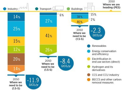 - Over 90 percent of the solutions shaping a successful outcome in 2050 involve renewable energy through direct supply, electrification, energy efficiency, green hydrogen, and bioenergy combined with carbon capture and storage (BECCS). Innovative solutions are reshaping the energy system. Yet, the necessary deployment levels at a speed compatible with 1.5°C will require targeted policies and measures.