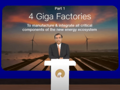 Speaking of giga factories, he explained, "Reliance will develop four giga factories which will manufacture and fully integrate all the critical components of the new energy ecosystem."